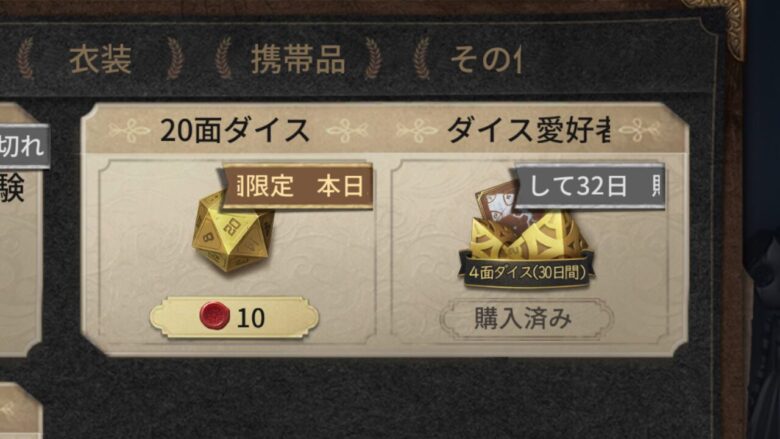 同じく課金アイテムの20面ダイスはシーズン終盤に目当てのアイテムが取り切れない場合に検討しよう。