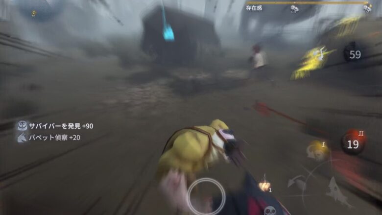 設置されたパペットは周囲のサバイバーを感知して位置を表示する。近くにサバイバーがいる場合パペットボタンも震えるため注意して見よう。