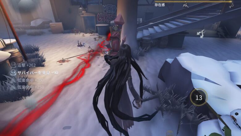 弦が張られた瞬間、線上にいた全てのサバイバーに1ダメージを与える。